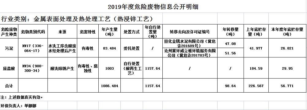 為了貫徹落實(shí)《河北省生態(tài)環(huán)境廳關(guān)于進(jìn)一步加強(qiáng)涉固險(xiǎn)廢物企業(yè)信息公開的通知》和《中華人民共和國固體廢物污染環(huán)境防治法》第二章第二十九條規(guī)定,涉危企業(yè)應(yīng)當(dāng)依法及時(shí)公開環(huán)境污染防治信息、主動接受社會監(jiān)督,現(xiàn)將我公司2019年度危廢情況做如下公開: