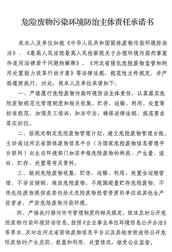 危險廢物污染環(huán)境防治主體責(zé)任承諾書